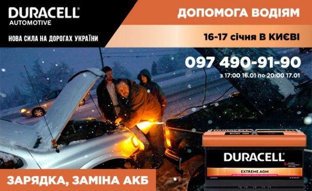 Информация размещена на правах рекламы:АвтоНова-Д - офіційний дистриб'ютор автомобільних АКБ Duracell в Україні. АвтоНова-Д втілює лідерську ініціативу Duracell на дорогах у Києві. З 16 на 17 січня команда DURACELL У КИЄВІ буде надавати безкоштовну допомогу водіям з розрядженими АКБ. Автомобіль ...